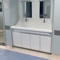 高分子洗手池材质特点:采用高分子材料一次吸塑成型,出水方式有:感应式、膝控式、脚踏式和手动开关,一台洗手池可客户要求选择单一出水方式或多种出水方式。洗手池分高背和低背,高背总高度1800mm,配有美容镜,照明灯,皂液器,可按客户要求配置烘手器和热水器。低背板无配置。