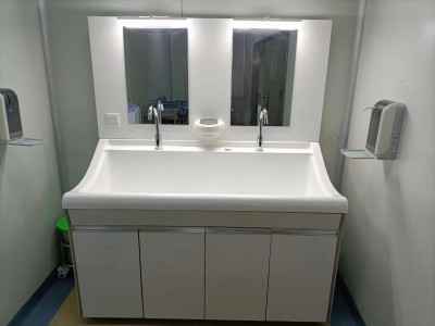 高分子洗手池材质特点:采用高分子材料一次吸塑成型,出水方式有:感应式、膝控式、脚踏式和手动开关,一台洗手池可客户要求选择单一出水方式或多种出水方式。洗手池分高背和低背,高背总高度1800mm,配有美容镜,照明灯,皂液器,可按客户要求配置烘手器和热水器。低背板无配置。